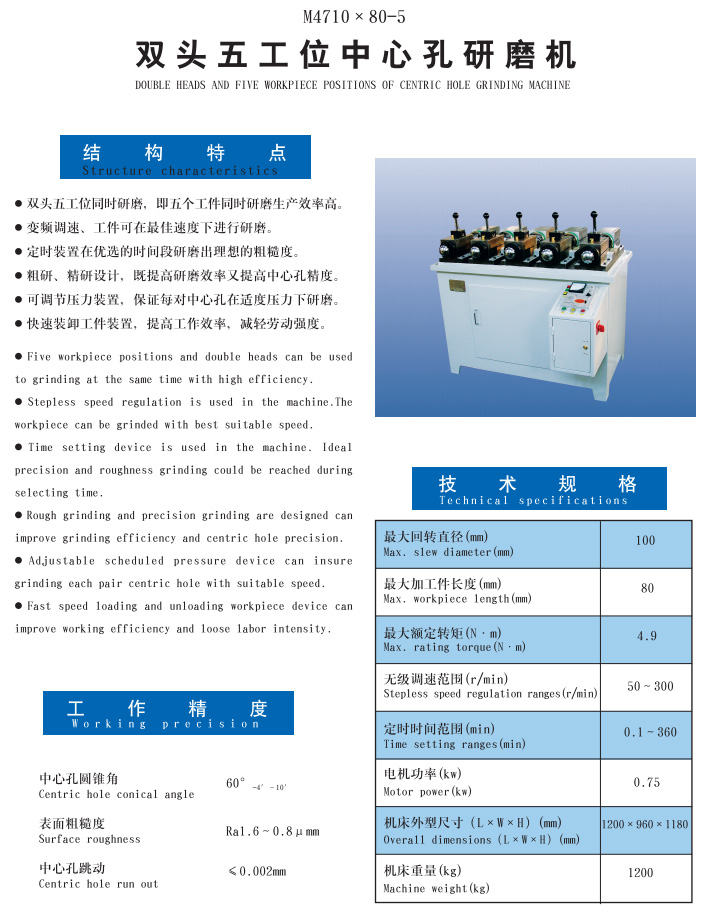 M4710A×80-5雙頭五工位氣控中心孔研磨機(jī)